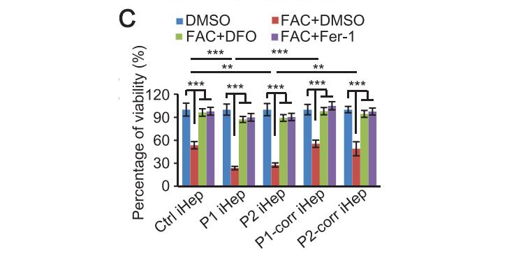 Deferoxamine (DFO; 0.5 μM; for 48 h) could rescue iron overload‐induced cell death in both iHep‐Orgs and iHep.