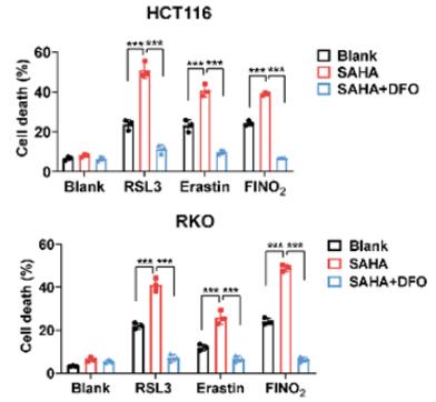 Deferoxamine (DFO) (50 µM; 24 h) significantly rescues promoted CRC cells death induced by different FINs.