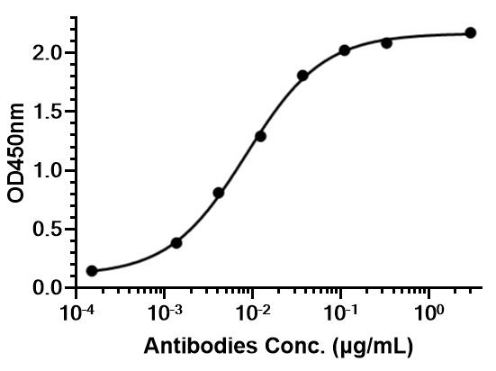 • Immobilized Human NAMPT, His Tag can bind ALT-100 (Human IgG4). The EC50 for this effect is 8.465 ng/mL.