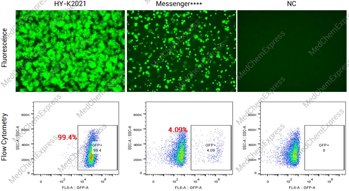 OptiLNP RNA Transfection Reagent (Immune Cells) (HY-K2021) demonstrates excellent transfection efficiency for mRNA in Jurkat cells.