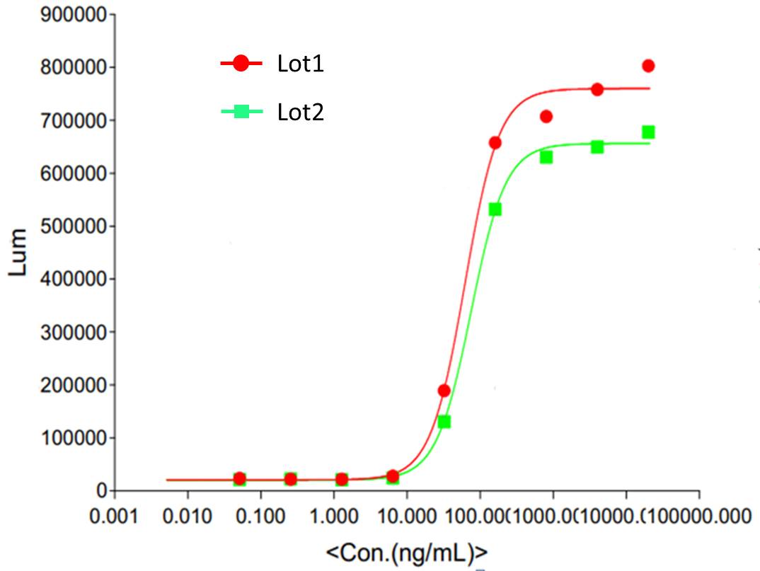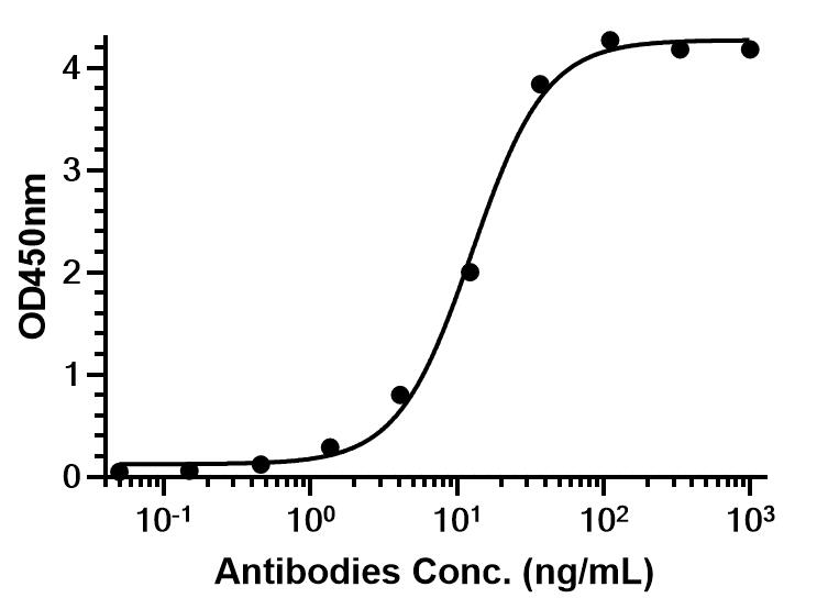 • Immobilized Human Her2/ERBB2 Protein (ECD, His Tag) can bind Pertuzumab (anti-HER2). The EC50 for this effect is 12.73 μg/mL.