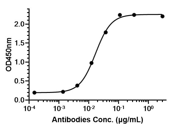 • Immobilized Human VEGFR2/KDR/CD309, Fc Tag can bind Ramucirumab (anti-VEGFR). The EC50for this effect is 16.83 ng/mL.