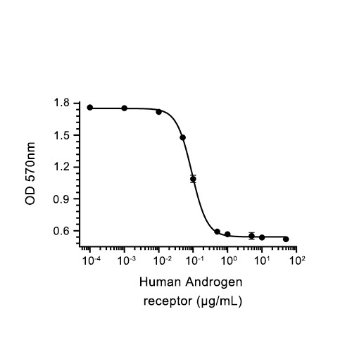 The androgen receptor protein is a steroid hormone receptor that acts as a ligand-activated transcription factor that regulates gene expression and affects cell proliferation and differentiation. Coactivators and corepressors such as ZBTB7A negatively regulate androgen receptor signaling by recruiting NCOR1 and NCOR2 to androgen response elements on target genes. Androgen receptor Protein, Human (His-SUMO, Myc) is the recombinant human-derived Androgen receptor protein, expressed by E. coli , with N-10*His, N-SUMO, C-Myc labeled tag.