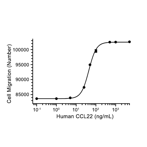 3. Measured by its ability to chemoattract BaF3 mouse pro-B cells transfected with human CCR4. The ED50 for this effect is <3 ng/mL, corresponding to a specific activity is >3.33×105 U/mg.