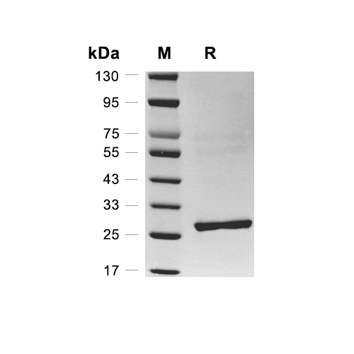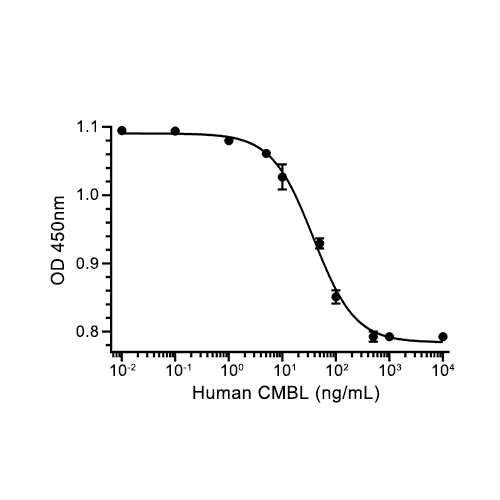 CMBL 蛋白是一种半胱氨酸水解酶,可将奥美沙坦酯转化为其活性形式奥美沙坦(一种血管紧张素受体阻滞剂)。它还可能激活 β-内酰胺抗生素,例如法罗培南酯和瑞那西林。CMBL 蛋白, Human (His) 是重组的 CMBL 蛋白,由 E. coli 表达,带有 N-His 标签。