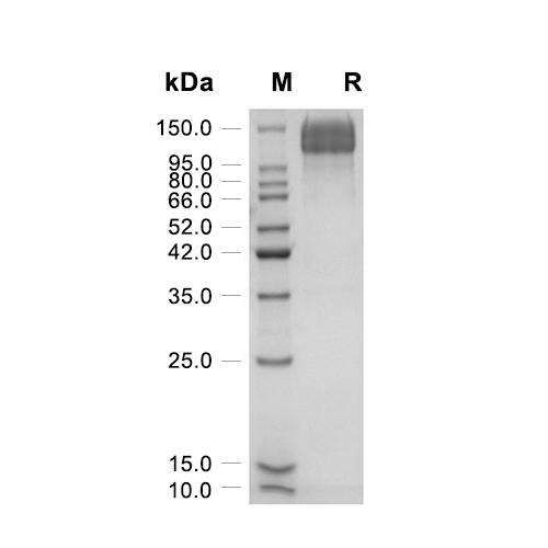 EGFR 蛋白是一种受体酪氨酸激酶,可结合 EGF 家族配体并激活多个信号级联。配体结合诱导受体同二聚或异二聚化,导致自身磷酸化和接头蛋白(例如 GRB2)的募集。EGFR 蛋白, Mouse (HEK293, Fc) 是重组的 EGFR 蛋白,由 HEK293 表达,带有 C-hFc 标签。