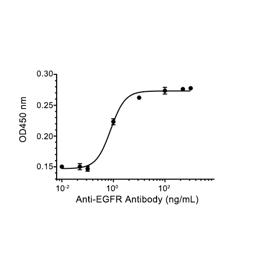 • Immobilized Mouse EGFR, at 1 μg/mL (100 μL/well) can bind Anti- EGFR Antibody. The ED50 is 0.7847 ng/mL, corresponding to a specific activity is 1.27×106 U/mg.
