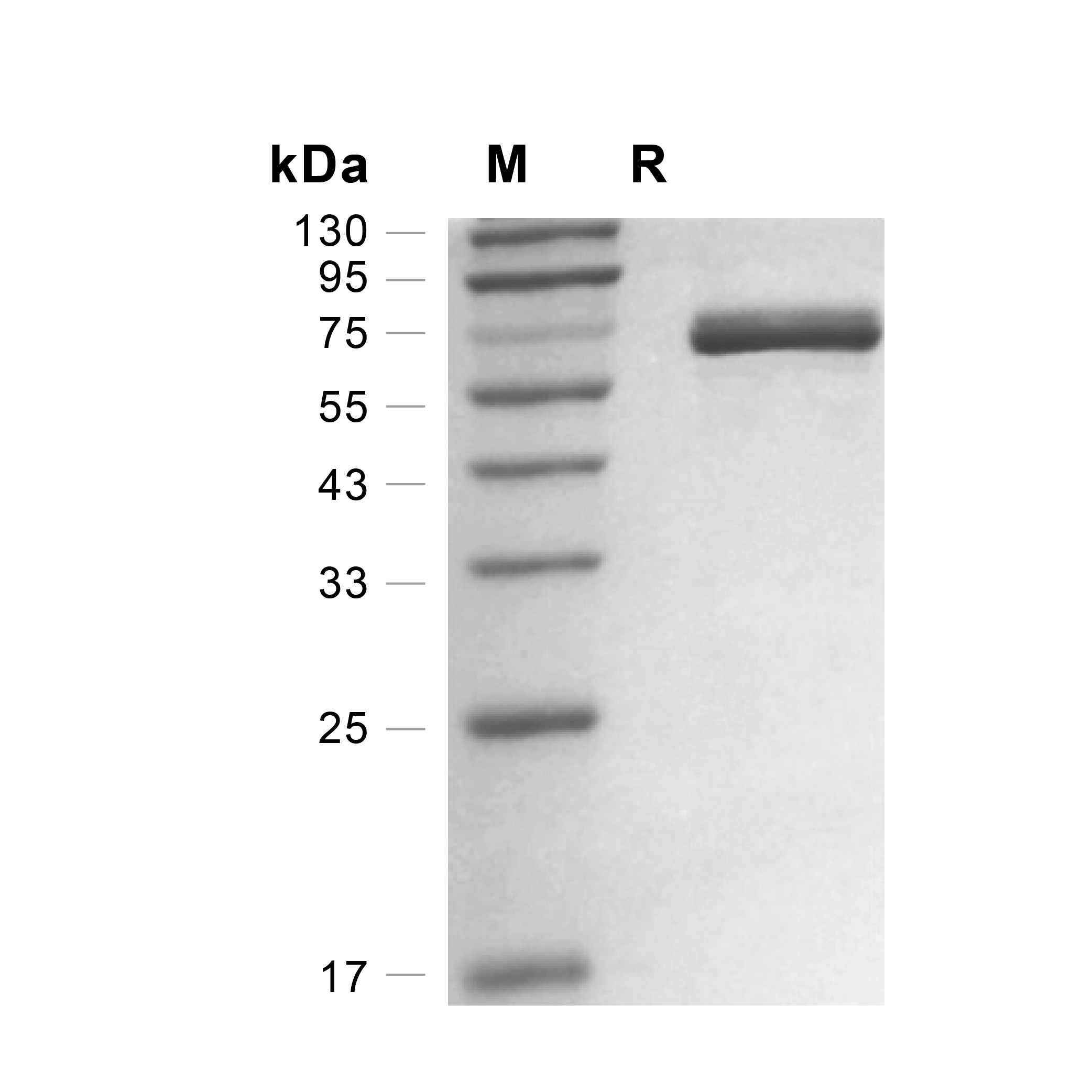 EphB1 蛋白是一种受体酪氨酸激酶,参与与肝配蛋白 B 配体(包括 EFNB1、EFNB2 和 EFNB3)的双向信号传导。它在视网膜轴突引导、神经祖细胞调节、树突棘成熟、突触形成、血管生成、靶向细胞迁移和肌肉干细胞维持中发挥着至关重要的作用。EphB1 蛋白, Mouse (HEK293, His) 是重组的 EphB1 蛋白,由 HEK293 表达,带有 C-His 标签。