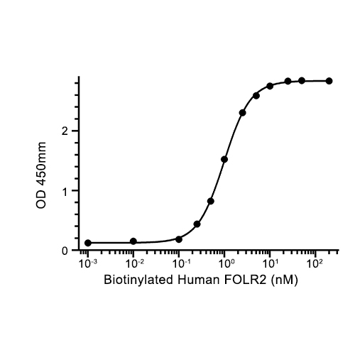 • Measured by its binding ability in a functional ELISA. When Folic acid -BSA conjugate is coated at 5 μg/mL (100 μL/well), the concentration of rhFOLR2 that produces 50% of the optimal binding response is found to be approximately 0.983 nM.