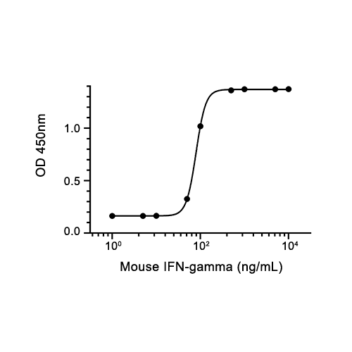 • Immobilized Mouse,IFN-gamma R1/CD119 at 10 μg/mL (100 μL/well) can bind Mouse IFN gamma Protein. The ED50 for this effect is 79.93 ng/mL.