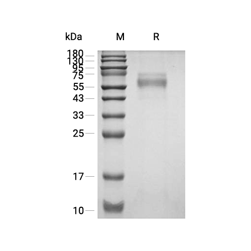 IL-6R alpha 是 IL-6R 的 α 亚基,也被其他白细胞介素受体共享。IL-6R alpha 可作为 IL-6 激动剂,参与包括 JAK/STAT、MAPK 和 Akt 在内的信号通路。IL-6R alpha 由 468 个氨基酸 (M1-R468) 组成,存在两个 N 端纤维连接蛋白 III 型结构域 (113-217 a.a, 218-316 a.a) 和可溶性形式 (1-365 a.a)。可溶性 IL-6R (sIL-6R) 可结合 IL-6 和二聚体化的 gp130 实现反式信号传导,并具有在特定免疫组织表达的特异性。IL-6R alpha 蛋白, Human (L20-P365) 由 CHO 细胞表达,是可溶 IL-6R alpha 片段,序列全长为 346 个氨基酸。