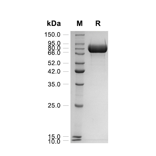Lactoferrin (LTF) is a major iron-binding protein in exocrine fluid and exhibits multiple antibacterial effects by chelating iron and disrupting bacterial membranes. It prevents biofilm formation, affects bone metabolism, and affects adenovirus and papillomavirus infections. Lactoferrin/LTF Protein, Human (HEK293, His) is the recombinant human-derived Lactoferrin/LTF protein, expressed by HEK293 , with C-10*His labeled tag.