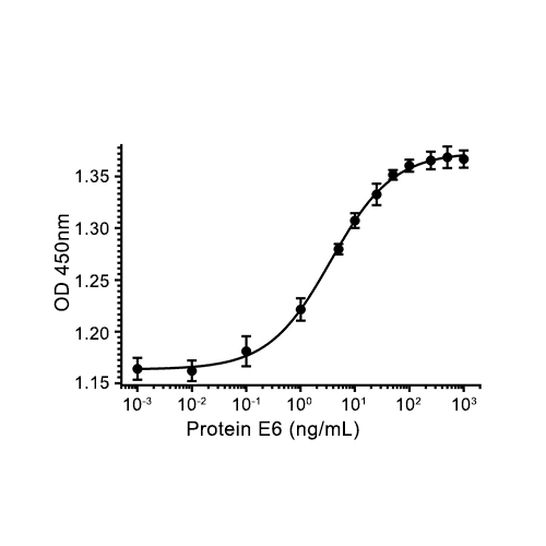 HPV16 E6 是一种病毒磷酸蛋白,具有致癌活性,属人乳头瘤病毒早期蛋白家族。HPV16 E6 通过蛋白酶体降解 pRB 释放 E2F 而激活细胞周期。HPV16 E6 可与 E6 协同永生化细胞并中和 E5 毒性,同时激活 AP-1/NF-κB 通路、下调 E-钙粘蛋白以增强迁移侵袭,是宫颈癌的核心靶点。Protein E6, HPV16 (His) 是重组的 HPV E6 蛋白,由 E. coli 表达,带有 N-6*His 标签。