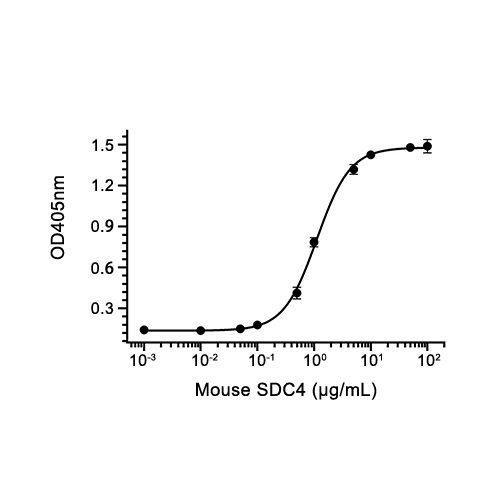 2. Measured by its binding ability in a functional ELISA. Immobilized Mouse MDK (HY-P79419) at 10 μg/mL (100 μL/well) can bind Mouse SDC4. The ED50 for this effect is 1.121 μg/mL.