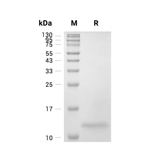 The TARC/CCL17 protein attracts T lymphocytes, particularly Th2 cells, and is involved in inflammation and immunity. It binds to CCR4 on T cells and contributes to GM-CSF/CSF2-induced pain and inflammation. In the brain, it maintains hippocampal microglia morphology and aids in adapting to neuroinflammation. Additionally, it plays a role in wound healing by promoting fibroblast migration. TARC/CCL17 Protein, Dog (HEK293, His) is the recombinant dog-derived TARC/CCL17 protein, expressed by HEK293 , with C-6*His labeled tag.