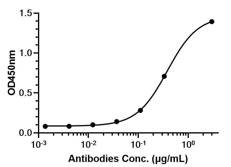 • Immobilized Hu-Ly6E-ECD-Fc can bind Anti-LY6E Antibody (MLYE4489A). The EC50 for this effect is 0.331 μg/mL.