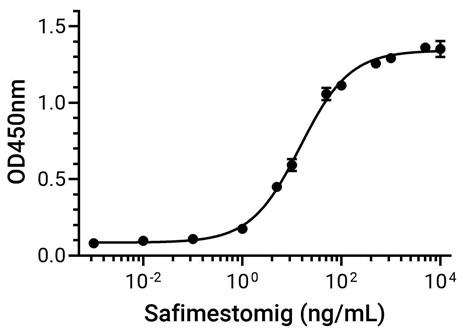 • Immobilized PD-L1 Protein, Human (HEK293, HY-P73361) can bind Safimestomig. The EC50 for this effect is 14.82 ng/mL.